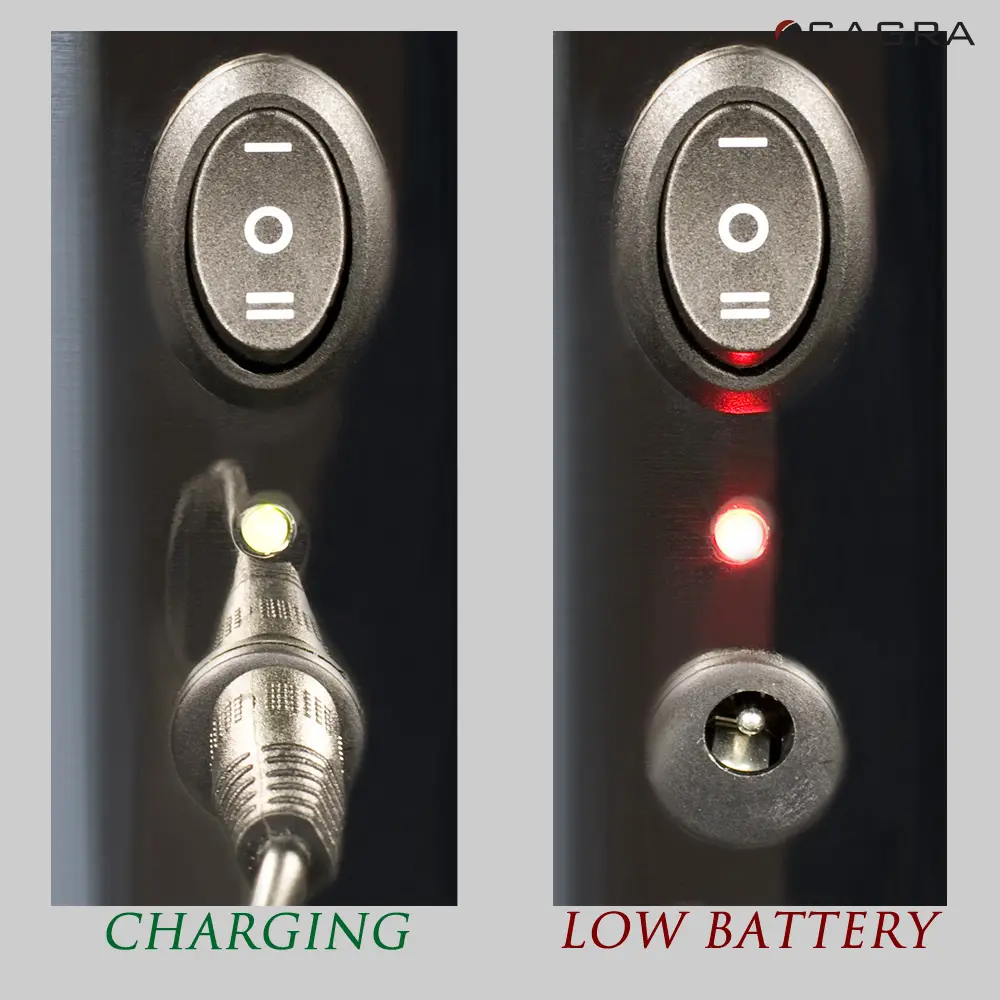 - LED Light indicates low battery and when fully charged
